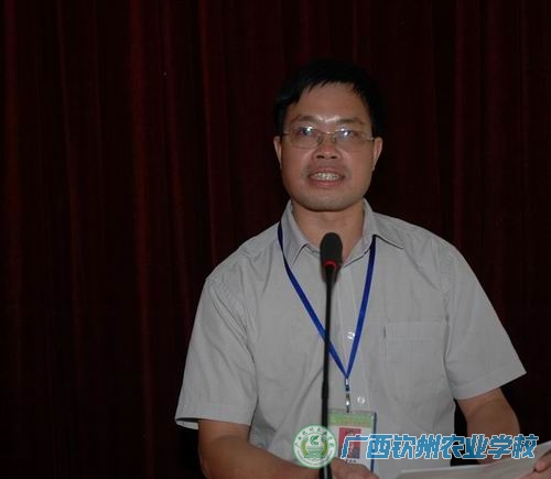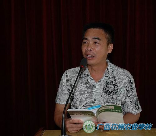 开班仪式现场 学校领导周家立副校长、覃一静副校长、覃效敏副校长、农广校副校长李 卉出席开班典礼 覃效敏副校长在开班典礼上讲话 农广校副校长李卉在开班典礼上讲话 教师代表开班典礼上讲话 学员代表开班典礼上讲话 学校领导与农广校领导合影 广西钦州农业学校2012年广西阳光工程农业创业培训班学员合影
