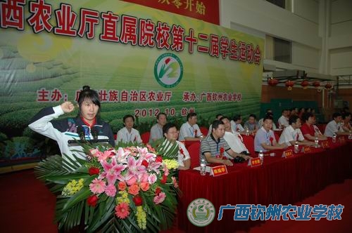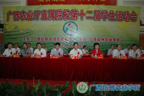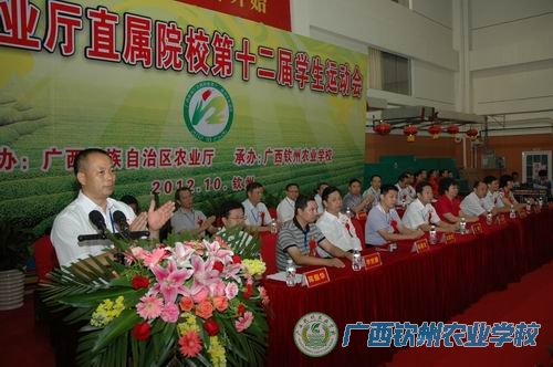 2012年10月24日上午,以“团结、奋进、文明、育人”为宗旨的自治区农业厅直属院校第十二届学生运动会在钦州市中青球馆隆重开幕。副厅长王健出席开幕式并宣布开幕。厅人事处、计财处、科教处等处室领导,8个参赛学校的领导和2个观摩团的领导也出席了开幕式。运动会开幕式由科教处副处长陈振华主持。