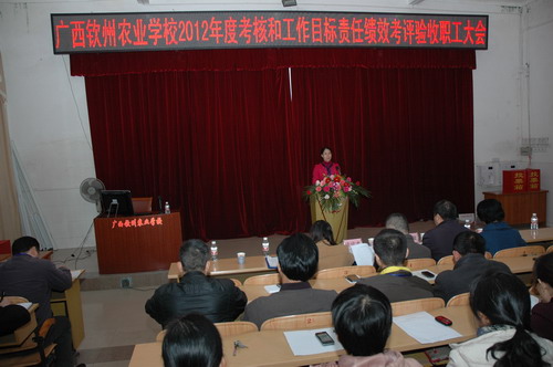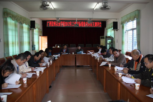 考核组组长马敏处长讲话会议现场伍国樑作领导班子述职述廉报告和个人述职报告覃一静副校长作个人述职报告覃效敏副校长作个人述职报告周家立副校长作个人述职报告工作目标绩效考评民主测评会现场