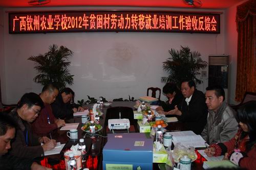 1月7日下午,由钦州市扶贫办、市财政局组成的扶贫培训工作验收专家组一行4人到我校开展扶贫培训验收工作。学校领导伍国樑校长、覃效敏副校长、相关科室负责人和任课教师代表参加验收汇报会,覃效敏副校长代表学校作扶贫培训工作总结汇报。 专家组经过听汇报和查阅资料后,认为学校对贫困村劳动力转移就业培训工作高度重视,领导措施得力,工作扎实,任务完成好,培训质量高,培训档案齐全、真实、规范,评为优秀等级。