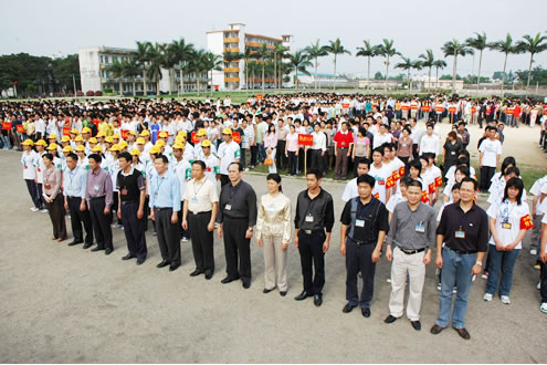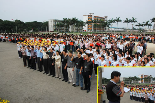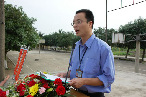 活动仪式现场(二)团委杨宁远书记主持仪式办公室陈明强主任介绍活动背景学生科黄小海科长宣读倡议书学生代表范勇南同学代表全体学生表决心教师代表伍岳锋老师代表全体教工表决心党办黄天伟主任带领师生员工庄重宣誓刘波校长等学校领导签名师生们签名签名的横幅