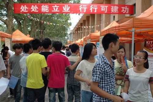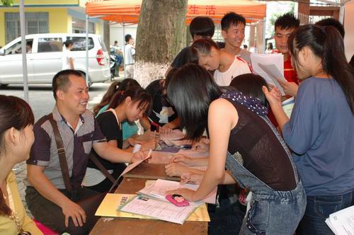 6月28日,我校与钦州市钦北区人社局联合举办的2011级学生顶岗实习双向选择洽谈会在我校隆重举行,2011级全体学生及2010级部分尚未落实就业单位的毕业生共1000多人参加了洽谈会。学校领导及钦北区人社局领导亲临洽谈会现场观摩指导。