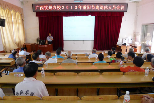 学校于当天下午在电化教室召开了重阳节离退休人员会议,学校领导及全体离退休老教师参加了会议。伍国樑校长在会上向离退休老教师汇报了80周年校庆的筹备工作及校庆各项活动的安排,并感谢老教师们对校庆工作的支持和配合。