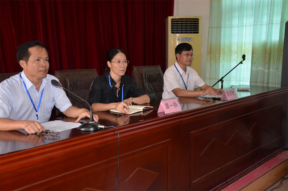 (从右至左)办公室主任 李从庆、学校副校长 覃一静、学校副校长 覃效敏