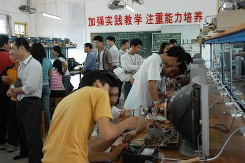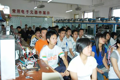 4月20日上午第1-2节,我校马隆技老师在电子电器实验楼二楼音视频实验室举行“一体化教学”公开课,主管教学的学校领导伍国樑副校长以及1-2节没有课的20多位教师参加听课。
