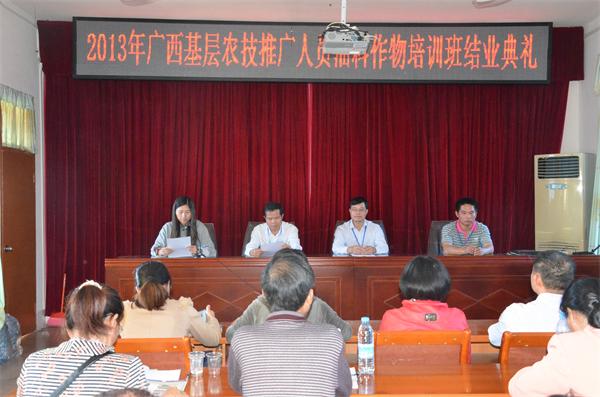 11月17日下午,在办公楼第二会议室举行简短而隆重的结业典礼,学员代表李丽媛在发言中充分肯定了本期培训班的培训效果,同时也感谢学校对培训工作的精心安排和周到的服务,表示一定要把新的知识新的理念应用到基层工作中,为广西的“三农”做出更大的贡献;覃效敏副校长在结业典礼上作总结讲话,鼓励全体学员要立足基层、服务农业,为新农村建设做出应有的贡献。