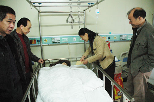 覃一静副校长为住院的退休老教师送上慰问金